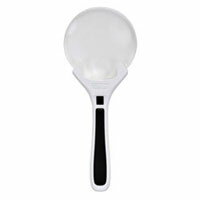 LEDライトで手元を明るく照らし、フチなしレンズで視界を妨げない見やすいルーペ。 小さく細かな文字が大きく見える倍率3倍。 4.5倍の小玉レンズも付いて、より拡大して見たいときに便利です。 白と黒のツートンカラーとフチなしレンズでスタイリッシュなデザインも魅力。 持ち手の黒ライン部は、滑りにくい素材を使用し、持ちやすくなるよう工夫をしています。