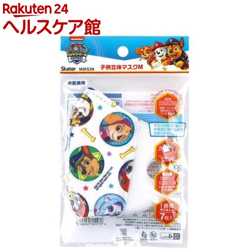 お店TOP>衛生医療>マスク>小さめマスク>子供用マスク>子供用 不織布 立体マスク パウ・パトロール (21枚セット)【子供用 不織布 立体マスク パウ・パトロールの商品詳細】●可愛いキャラクター柄の子供マスクです。 ●不織布を使用した防塵効果に優れた三層構造。 ・表地:飛沫の水分を防ぐシート・フィルタ:花粉・ウィルス飛沫を99%カット・裏地:肌ざわりの良い快適シート●口元の空間が快適スペースをつくるので、息苦しさをやわらげ呼吸がラクラク●耳が痛くなりにくいやわらか素材の平ゴムを使用。 ●すき間を作らない立体カーブでお顔にフィット!【規格概要】表地:ポリエステルフィルタ:ポリプロピレン裏地:ポリプロピレン耳ひも部:ポリエステル・ポリウレタン本体サイズ:約120*100mm(2つ折り時)枚数:7枚入り【発売元、製造元、輸入元又は販売元】スケーター※説明文は単品の内容です。 リニューアルに伴い、パッケージ・内容等予告なく変更する場合がございます。 予めご了承ください。 ・単品JAN:4973307626623スケーター630-8520 奈良市杏町216-10742-63-2040広告文責:楽天グループ株式会社電話:050-5577-5043[マスク] 子供用 不織布 立体マスク パウ・パトロール(21枚セット) 1,016 円