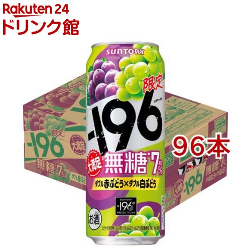 お店TOP>水・飲料>お酒>混成酒>リキュール>サントリー -196無糖 ダブル赤ぶどう×ダブル白ぶどう (24本入×2セット(1本500ml))【サントリー -196無糖 ダブル赤ぶどう×ダブル白ぶどうの商品詳細】●「-196無糖」シリーズから、(ダブル赤ぶどう×ダブル白ぶどう)●-196度製法だからこそ実現できる、無糖でありながら満足感のある、2種のぶどうの果実感をお楽しみいただけます。 ●赤ぶどうの華やかな香りと深いコク、白ぶどうのジューシーさ、その重なりを一度にお愉しみいただけます。 ●パッケージは、2種類のぶどうをイメージしたカラフルな背景に、みずみずしい赤ぶどうと白ぶどうを大きく描き、果実の満足感を表現しました。 ●アルコール度数:7.0%【品名・名称】スピリッツ(発泡性)【サントリー -196無糖 ダブル赤ぶどう×ダブル白ぶどうの原材料】ぶどう、ウオツカ(国内製造)、桃浸漬酒、食物繊維【栄養成分】100mlあたりエネルギー:44kcal、たんぱく質:0g、脂質:0g、炭水化物:0.7〜1.2g、食塩相当量:0.08〜0.16g【アレルギー物質】もも【保存方法】常温【原産国】日本【発売元、製造元、輸入元又は販売元】サントリー20歳未満の方は、お酒をお買い上げいただけません。 お酒は20歳になってから。 ※説明文は単品の内容です。 リニューアルに伴い、パッケージ・内容等予告なく変更する場合がございます。 予めご了承ください。 ・単品JAN:4901777443181サントリー〒135-8631 東京都港区台場2-3-303-5579-1000広告文責:楽天グループ株式会社電話:050-5577-5043[アルコール飲料] サントリー -196無糖 ダブル赤ぶどう×ダブル白ぶどう(24本入×2セット(1本500ml)) 10,025 円