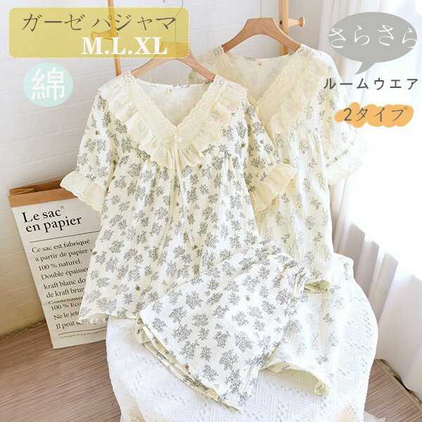 ルームウェア 上下セット 長袖 レディース 定番 寝間着 部屋着 パジャマ 寝巻き 寝巻 ガーゼパジャマ ロングパンツ パンツ 前開き ダブルガーゼ 2重ガーゼ ガーゼ 綿100% セットアップ 上下 セット ソフト コットン ドット柄 ドット 総柄 大人 3,085 円
