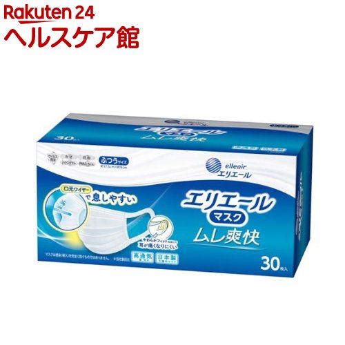 お店TOP>衛生医療>マスク>マスク 形状・素材別>プリーツマスク>エリエールマスク ムレ爽快 ふつうサイズ (30枚入)【エリエールマスク ムレ爽快 ふつうサイズの商品詳細】●高い捕集性能と通気性を両立した不織布を採用。 ●口元爽快ワイヤーが空間を作り、息も会話もしやすい。 ●長時間使用でも耳が痛くなりにくい、「やわらかフィット耳掛け」を採用。 伸縮性のある幅広の素材で優しくフィットします。 やわらかさUP※ ※メーカー従来品比●ウイルス飛沫もしっかりブロック。 不織布3層構造の高機能フィルターを採用し、ウイルス飛沫や花粉の侵入を防ぎます。 【注意事項】・かゆみ、かぶれ等の症状があらわれた場合は、使用を中止してください。 ・有害な粉塵やガス等が発生する場所での使用や、それを防ぐ目的には使用できません。 ・マスクの素材自体には素材のニオイがあります。 ニオイで気分が悪くなった場合は、使用を中止してください。 ・使用中に気分が悪くなったり、息苦しさを感じた場合は、使用を中止してください。 ・乳幼児の手の届かない所に保管してください。 ・高温多湿な場所での保管は避けてください。 ・火気のそばでの使用はおやめください。 ・ノーズフィッターを折り曲げる際に、端部の飛び出しにご注意ください。 ・本品は使い切り商品です。 洗濯による再使用はできません。 機能面・衛生面から、1日1枚のご使用をおすすめします。 ・個人差により、鼻のまわりに隙間が生じ、眼鏡が曇る場合がありますのでご注意ください。 ・開封後のマスクは袋に入れ、封をし、清潔な場所に保管してください。 【原産国】日本【ブランド】エリエール【発売元、製造元、輸入元又は販売元】大王製紙リニューアルに伴い、パッケージ・内容等予告なく変更する場合がございます。 予めご了承ください。 大王製紙102-0071 東京都千代田区富士見2丁目10番2号 飯田橋グラン・ブルーム(24階)0120-205-205広告文責:楽天グループ株式会社電話:050-5577-5043[マスク/ブランド:エリエール/] エリエールマスク ムレ爽快 ふつうサイズ(30枚入)【エリエール】 1,226 円