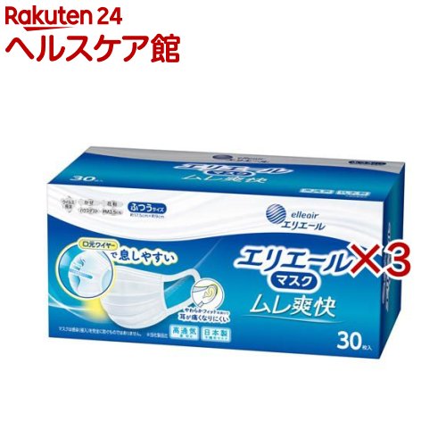 お店TOP>衛生医療>マスク>マスク 形状・素材別>プリーツマスク>エリエールマスク ムレ爽快 ふつうサイズ (30枚入×3セット)【エリエールマスク ムレ爽快 ふつうサイズの商品詳細】●高い捕集性能と通気性を両立した不織布を採用。 ●口元爽快ワイヤーが空間を作り、息も会話もしやすい。 ●長時間使用でも耳が痛くなりにくい、「やわらかフィット耳掛け」を採用。 伸縮性のある幅広の素材で優しくフィットします。 やわらかさUP※ ※メーカー従来品比●ウイルス飛沫もしっかりブロック。 不織布3層構造の高機能フィルターを採用し、ウイルス飛沫や花粉の侵入を防ぎます。 【注意事項】・かゆみ、かぶれ等の症状があらわれた場合は、使用を中止してください。 ・有害な粉塵やガス等が発生する場所での使用や、それを防ぐ目的には使用できません。 ・マスクの素材自体には素材のニオイがあります。 ニオイで気分が悪くなった場合は、使用を中止してください。 ・使用中に気分が悪くなったり、息苦しさを感じた場合は、使用を中止してください。 ・乳幼児の手の届かない所に保管してください。 ・高温多湿な場所での保管は避けてください。 ・火気のそばでの使用はおやめください。 ・ノーズフィッターを折り曲げる際に、端部の飛び出しにご注意ください。 ・本品は使い切り商品です。 洗濯による再使用はできません。 機能面・衛生面から、1日1枚のご使用をおすすめします。 ・個人差により、鼻のまわりに隙間が生じ、眼鏡が曇る場合がありますのでご注意ください。 ・開封後のマスクは袋に入れ、封をし、清潔な場所に保管してください。 【原産国】日本【ブランド】エリエール【発売元、製造元、輸入元又は販売元】大王製紙※説明文は単品の内容です。 リニューアルに伴い、パッケージ・内容等予告なく変更する場合がございます。 予めご了承ください。 ・単品JAN:4902011121124大王製紙102-0071 東京都千代田区富士見2丁目10番2号 飯田橋グラン・ブルーム(24階)0120-205-205広告文責:楽天グループ株式会社電話:050-5577-5043[マスク/ブランド:エリエール/] エリエールマスク ムレ爽快 ふつうサイズ(30枚入×3セット)【エリエール】 4,356 円