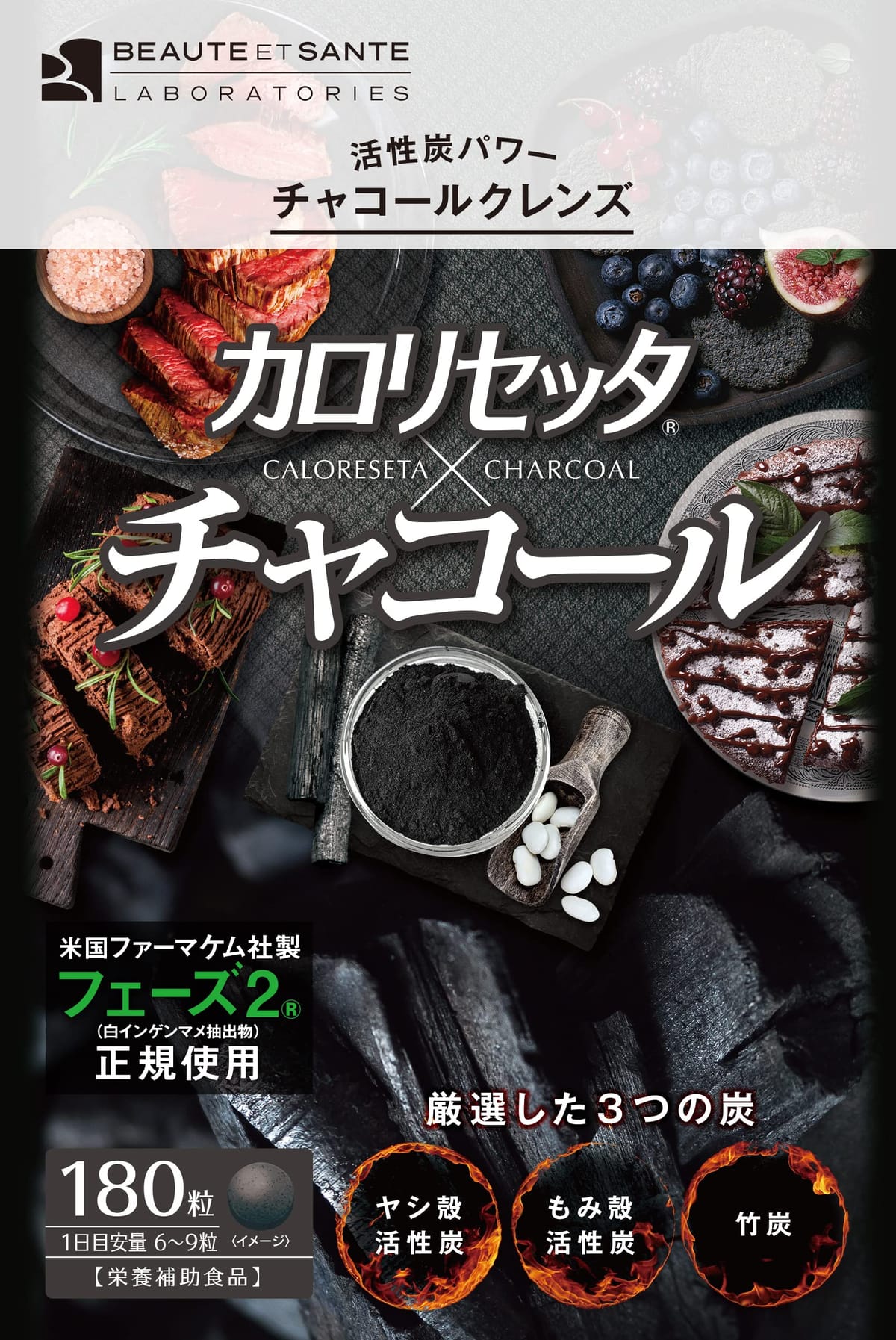 カロリセッタに話題の”炭”パワーをプラス!3つの「食べる炭」で余分なエネルギーを吸着!白インゲンのダイエットパワーに着目した成分フェーズ2を配合!ダイエットの強い味方!難消化性デキストリン配合 食べながらダイエット! フェーズ2 ヤシ殻活性炭 赤松炭 竹炭 難消化性デキストリン配合のサプリメント。 炭(チャコール)の吸着パワーでスッキリをサポート! ボーテサンテラボラトリーズ カロリセッタ*チャコール 180粒 4560447831644 1,800 円