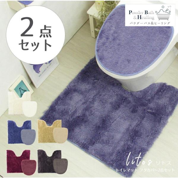トイレマット セット おしゃれ 2点セット 洗える 安い フタカバー 吸着式 安い モダン 北欧 5色 上質 シンプル 人気 リトス