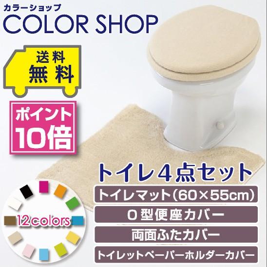 トイレ4点セット マット(55×60cm) 両面フタカバー O型便座カバー ペーパーホルダーカバー /カラーショップ ベージュ