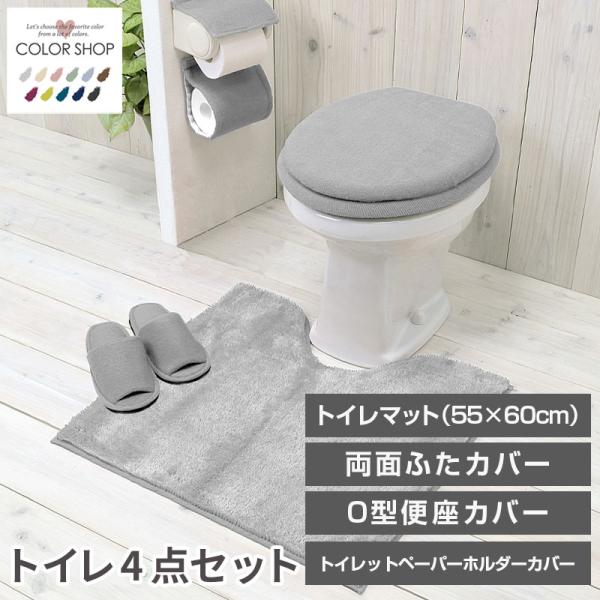 トイレ4点セット マット(55×60cm) 両面フタカバー O型便座カバー ペーパーホルダーカバー /カラーショップ ライトグレー