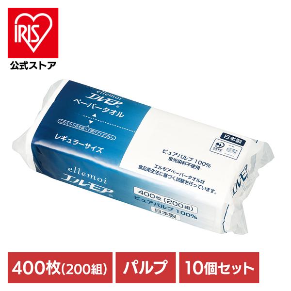 ペーパータオル エルモア 中判 10個セット タオルペーパー カミ商事 紙タオル レギュラーサイズ 200組(400枚)