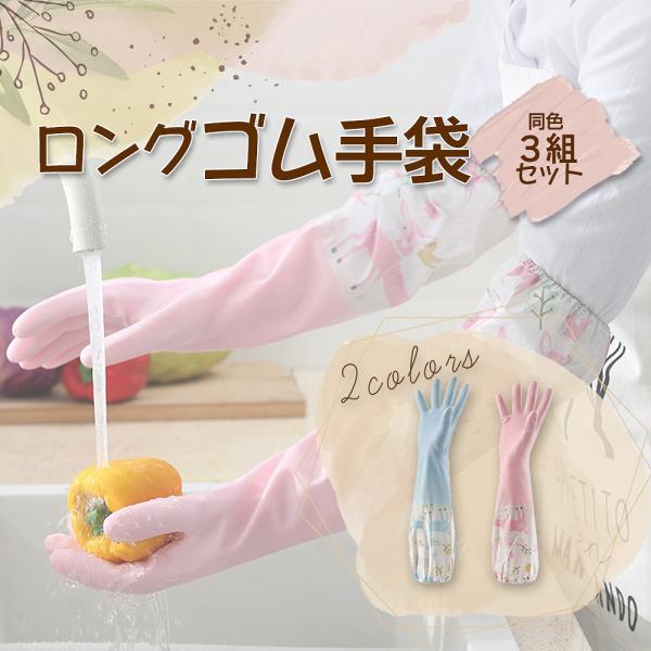 ゴム手袋 ロング作業用 ロンググローブ ロングスリーブ ロング 食器洗い キッチン掃除 トイレ掃除 浴室掃除 クリーニング 掃除 風呂掃除 3枚セット