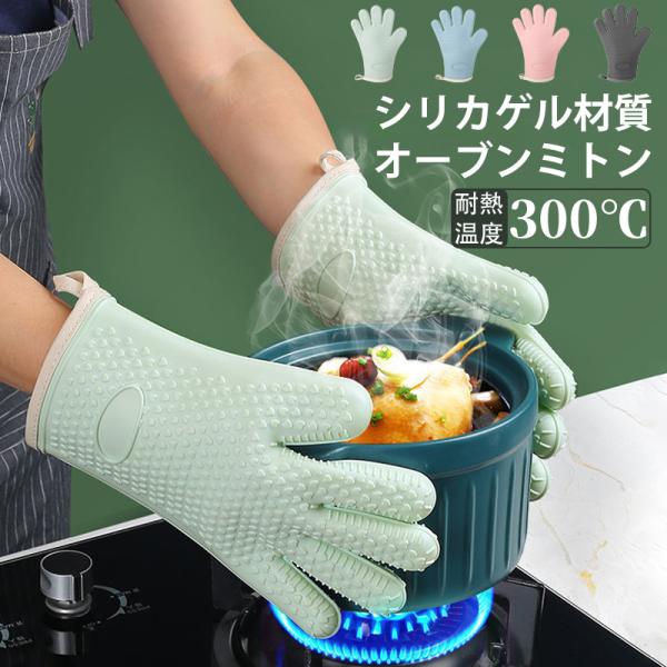 オーブンミトン 耐熱 5本指 両手用 キッチングローブ 鍋つかみ 耐熱グローブ オーブン手袋 耐熱300℃ キッチン シリコングローブ シリコンミトン