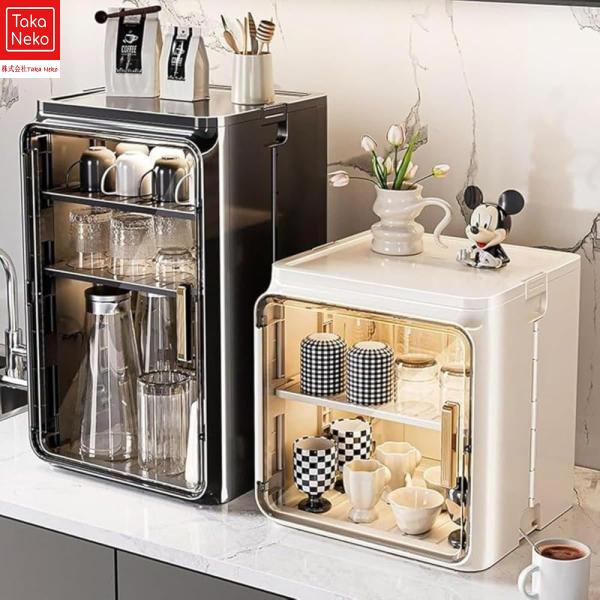 コップ卓上食器棚 ミニカップボードカウンター茶碗収納ボックス 2段 3段 扉付ックス ミニカップボード カップ食器棚 キッチン多機能 コンパクト 大容量 防塵 防