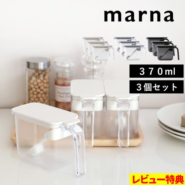 特典付 マーナ 調味料ポット 3個セット 調味料ケース 調味料入れ キャニスター セット 容器 密閉 スプーン付き ホワイト グレー ブラック クリア K736 marna
