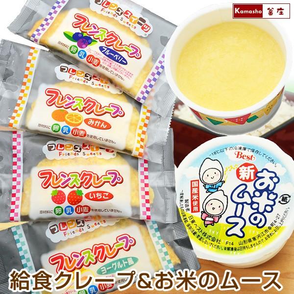 米粉 学校給食クレープアイス4種(ヨーグルト風、いちご、みかん、ブルーベリーを各5枚・計20枚入)&お米のムース(5ヶ入×2パック)