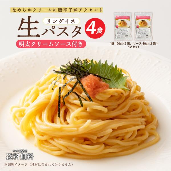 生パスタ 4食 明太クリームソース付き リングイネ 生麺 明太子クリーム 送料無料 明太子 めんたいこ パスタ 時短 食品 非常食 長期保存 簡単 香川 イタリアン