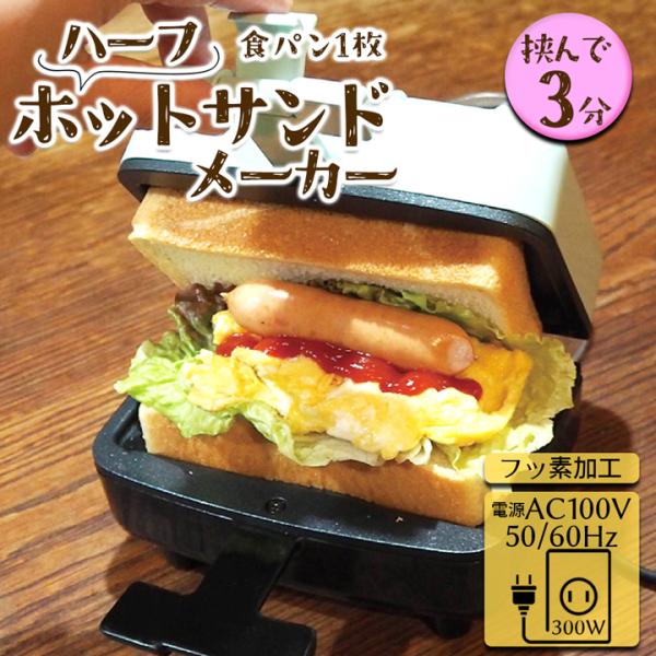 ホットサンドメーカー 電気 食パン 1枚 ハーフ ホットサンド 耳まで焼ける AC電源 3分 朝食 おやつ 簡単調理 時短 焼き目 コンパクト かわいい ランチ