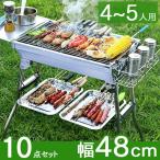[送料無料/在庫有] ・豊富な10点セット ・折りたたみ式で組立簡単 ・皿やトングが置けるテーブル付き ・網と鉄板で焼き方いろいろ ・錆びにくいステンレス製 ■サイズ 本体:W60×D33×H57cm 網:30×45cm 重さ:約3.1kg セット内容:本体、炭網、網、鉄板、網用持ち手、小テーブル、調味料棚、下棚、炭ハサミ、トング、取り扱い説明書 ■素材 本体、小テーブル、網用持ち手、トング:ステンレス 網:クロームメッキ銅 鉄板:鋳鉄 下棚:メッキ 調味料棚:アルミニウム合金 炭ハサミ:鉄電着塗装 バーベキューコンロ 10点セット バーベキューグリル ステンレス BBQ 48cm 焼肉 BBQコンロ グリル アウトドア コンロ コンロセット セット |