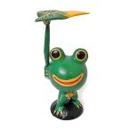 葉っぱの傘を差したな可愛らしいカエル君。 やっぱり葉っぱの傘が一番似合います。 『チョコン』と座ったカエル君の顔の笑顔は、 手描きなので微妙に一つ一つ違います。 素朴さと手作り感がなんともいえないカエル君です☆ ■サイズ:高さ約24cm(傘含む)正面横約10cm奥行き約8cm ※手作りのため、商品により多少大きさ・色合いが異なります。 予めご了承下さいませ。