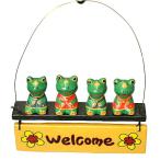 4匹のカエル君がちょこんと座ったWelcomeプレート NEWバージョンで新登場です! 新しくなっても、ちょっと抜けたお茶目な感じは健在、 ほんわかムードで出迎えてくれます♪ 壁掛けタイプなので、ご自宅の玄関やお部屋、 ショップ入り口・レジ前などに引っ掛けておける役に立つ、 “永遠の”癒し系アイテムです☆ ※一体づつの手作りのためサイズ、色合い、顔つき 等が画像と若干異なる場合があります。 ■アジア>アジアン雑貨>バリ雑貨>バリ島 ■サイズ>高さ約18cm、横幅約15cm、重量約38g |