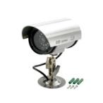 ■赤色LEDが常時点滅、侵入者に警告。 配線不要ですぐ使用可能。 ■サイズ/170×84×82mm ■材質:ABS ■質量/340g ■使用電池/単三形乾電池×2個(別売り) ■連続動作時間/約2ヵ月半 ■首振り角度調節(手動)/左右:手動360°、上下:180° ■非防水 ■付属品/ネジ×3本、プラスチックアンカー×3本、結束バンド×1本