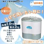 ■仕様 ・電源:100V50Hz/60Hz ・消費電力:洗濯側 180w/脱水側 80w ・標準使用容量:洗濯側 2.6kg/脱水側 2kg ・電源コード長さ:約1500mm ・脱水ホース長さ:約470mm ■梱包 ・外装箱:ホワイトカートン ☆洗濯と脱水が同時に行える二槽式。 ☆小型なのに反復水流と本格脱水! ☆ダイヤルを回すだけの簡単操作! ☆一人暮らしはもちろん、会社などでも大活躍! ☆布巾、雑巾、タオル、靴、作業着、衣類、ペット用品などの洗濯に最適。
