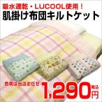 肌掛け布団の「キルトケット」です。 衿と裏面にLUCOOL素材を使用しています。 ※色柄は当店のお任せとなり、お選びいだだけません。 ※画像の色柄は商品の一例で、実際の商品と異なる場合があります。 表地:ポリエステル80%綿20%、中わた:ポリエステル100% 充填量約300g、衿・裏地:ポリエステル100%(LUCOOL使用) 約135×185cm(シングルサイズ) |