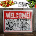 Rat Fink Message Board WELCOME ! ラット フィンク メッセージ ボード ウェルカム ショップはもちろん、大事なお客様を招く時は快く ! コミカルなラットフィンクがお出迎え。 プラスティック製のサインボード サイズ: (H) 25.7 × (W) 34.5cm |