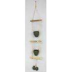 ブランコポット(緑/二連)。 ポットサイズ;直径8.5(内寸6.5)×深さ7cm陶器。 全体の長さ100cm(縄の締り具合で多少違います)。 ちょこっとグリーンを入れて楽しんだり、小物や造花を飾ってもいいですね。 ハンドメイドの為、使用上問題のない気泡やキズ等はご了承ください。