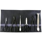 セット内容 1.1019サツキ鋏小 2.1216ニッパー式又枝切 3.3317ステンレス小品盆栽用ピンセット 4.2308ステンレスワイヤーカッター 5.1266八床ミニ 6.5020ステンレス盆栽熊手厚手 ケースは1196巻物Bタイプになります。