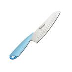 ディンプル包丁 グラシエール先丸牛刀 180mm ブルー ステンレス包丁 全長:約305mm、重量:約950g 刀身:ステンレス刃物鋼 ハンドル:エラストマー樹脂、フック:ポリプロピレン樹脂 刀身にえぐりを入れるディンプル加工。 空気の流れを作るので、食材の切り離れをよくします。
