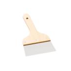 特長 ステンレスブレードをスキ研磨していますので適度なしなりが得られます。 さらに表面を磨いて仕上げてありますので、パテの掻き落としも容易です。 仕様:ステンパテベラ サイズ:4寸約122mm ブレード:ステンレスバネ鋼 ハンドル:合板(厚約9mm) |
