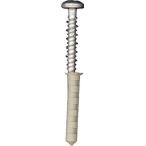 ■入数:1PK ■外径(mm):4 ■長さ(mm):28 ■最大取付厚(mm):5 ■穿孔深さ(mm):38 ■引張最大荷重(kN):2.26 ■下穴径(mm):4 ■仕上げ:ラスパート ■質量(g):225 ■頭部形状:トラス ■頭形状:トラス ■本体:プラスチック樹脂 ■ビス:スチール ■ねじとプラグが相手材に密着することで強力な締結感が得られます。 ■中空部・非中空部のどちらの材料にも使用できます。 ■モルタルやブロックにも使用できます。 ■ねじとプラグの合体効果で強い締結感があります。 ■コンクリート、アスロック等の中空建材。 ■モルタル、ブロック、中空押し出しセメント板、窯業系サイディング下地用。 ■引張最大荷重は、コンクリート強度Fc26N/m[[平米]]時の値です。
