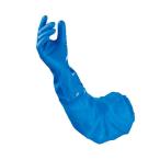 食品衛生法適合品 手袋:ニトリル、腕カバー:ポリエチレン系樹脂 ブルー L/長さ:65cm ■従来品にはない腕カバー付きニトリル手袋。 ■手袋部分は中厚手タイプ。 ■手袋部分は、特殊配合のニトリルゴムで、動植物油に強い。 ■独自の技術(特許登録済み)により腕カバーを強力に接着。 ■裏地:なし |