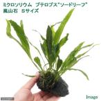 ミクロソリウムは底床に植え込んでも、流木や岩に活着させても育成できる水草です。 根茎を用上の上に置くか、流木や石につかまらせるようにします。 光、水温などに幅広く適応し丈夫であるが水中育成に中性〜弱酸性の水が適していてやや古い水質を維持するとよく育ちます。 ミクロソリウムは水質の急変を嫌い、長期間にわたって水替えを行なわなかった水槽の水を急に替えると、親株が衰弱してしまいます。 その後世代交代の為、葉の裏面から新しい芽を数多く出すようになります。 弱アルカリ性、弱硬水中では葉が濃い緑色になり、成長は遅くなります。 低光量下では、光を多く受けようとして、光に対して直角に葉を次々と伸ばし、葉の密生した群落を形成します。 数多くの葉を形成した時には、光に対して平行(垂直上向き)に葉を伸ばします。 弱酸性の水質を一定に保つのが育成のポイントである。 活着する性質を持つところから、砂に植えない方が良いとも言われますが、弱酸性〜中性で水質を一定に保つことにより、砂に植えても活着させた場合と同様に成長します。