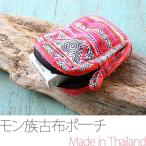 モン族の古い布を利用して作ったポーチです。 白地はプリント紺地はろうけつ染です。 立体的に縫製した外ポケット付きファスナー開きです。