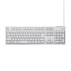 ■入力しやすい、深めのしっかりしたキータッチを持つUSB接続タイプのスタンダードキーボードです。 ■最大1000万回のキーストロークに耐える丈夫なキーを採用しています。 ■誤って水などの液体をキーボード上にこぼしても、本体裏面の水抜き穴からすぐに液体を排出できる排水機能を装備しています。 ※防水設計ではありません。 ■専用ドライバなどのインストールは不要で、パソコンのUSBポートにコネクタを接続するだけですぐに使用可能です。 ■傾斜角を2段階で調整できる傾斜角度調節スタンドが付いています。 ■打鍵しやすいキーピッチ19mmと、日本語108キー配列を採用し、快適なタイピングが可能です。 ■キートップをラバードームで支えるメンブレン方式を採用しています。 ■キートップにはスタイリッシュで見やすいオリジナルフォントを使用しています。 文字は長時間使用しても薄くなりにくいレーザー刻印を施しています。 ■パソコンの他に、PlayStation3、Wii、WiiUでも使用可能です。