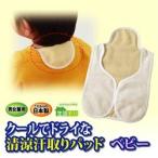 ガーゼ仕様でお肌に優しい!赤ちゃん用の汗取りパッドが登場!表地は赤ちゃんの肌に優しいガーゼ素材。 汗をしっかり吸収し、繰り返し使ってもやわらかな肌触り!裏地は東レの“クールモーション(R)”を使用。 べとつきにくく、サラッとしたクールな感触で快適!前開き・両脇オープンタイプなので、服を着たままサッと脱げて着替える手間も省けます。 お昼寝時、お出掛け時、お風呂上がり時などに!あせもや汗が冷えて風邪を引く予防にも! ■(約)18×28cm、日本製※メール便/DM便は郵便受けに投函されます。 日時指定・商品未着・紛失等の保障対象外です。 代引き決済選択時はコンビニ後払い決済に変更されます(手数料324円)。