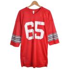 ■状態 USEDグレード[B]:USED商品ですのでそれなりの使用感があります。 予めご了承ください。 1. ボディ:微細な生地キズなどあり 2. プリント:スレハゲ・クラックなどあり ■サイズ[単位:約/cm] 表記:L 着丈:84 身幅:50.5 裄丈:65 袖丈(脇下計測):36 ※モデル 身長:154cm / 体重:40kg ※サイズは小さめで実寸計測おおよそメンズM相当(ロング丈)となります。 ※ブランドや年代によってもサイズ感が異なり、また体型によっても袖丈感が異なりますので実寸を必ずご参考下さい。 ■商品詳細 生産国:USA 製造年:1980年代 色&柄:レッド 素材:ナイロン:100% -Tops-Tshirt-Sport-Uniform-ShortSleeve-Red-Mens-Medium-Vintage .......