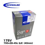 シュワルベ チューブ 17SV 700×28-45c 仏式(40mm) 幅広いサイズレンジと豊富なラインナップであらゆるタイヤサイズに対応します。 また、英米仏式すべてバルブコアを取り外せるようになっており、シーラントやパンク防止剤の注入も容易です(15SV-ML除く)。 ■対応サイズ : 700×28-45c ■バルブ形式 : 仏式 ■バルブ長 : 40mm ■素材 : ブチルゴム ■1本入り |
