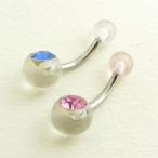 14G・アクリル製・へそピアス・耳用バナナバーベル ボールにキューピックジルコニア入り シンプルで使いやすい一品です。 ゲージ:14G ボールの大きさ:8ミリ、5ミリ シャフトの長さ:10ミリ |