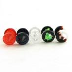 片側がスパイク風にとがっています。 16Gのホールで装着すると大きなプラグのように見えます 柄は無色のラメ入りと、柄入りタイプ ディスク部:大・直径約8mm シャフトの長さ:約6mm |