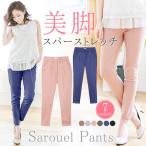 ストレッチ 7分丈 サルエルパンツ maボトムス パンツ サブリナ クロップド丈 裾リブ ムジ 無地 ウエストゴム レディース シンプルisベスト....... |