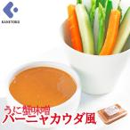 普通のバーニャカウダと比べると、とろりとしていて 具材にしっかり絡み付くソースになっています。 うにの味と香りに、蟹味噌の風味と旨味が濃厚! そこに、アンチョビ・にんにく・オリーブオイルを加え、 洋食でもぴったり合うバーニャカウダ風に仕上げました。 温めずにそのままで、スティック野菜などにつけてお召し上がり頂けます。 生野菜は勿論、グリル野菜や揚げ物、茹でた海老やイカ等の海鮮にもマッチ。 クラッカーに小さく切ったチーズを乗せて、 バーニャカウダ風を少し垂らして食べても美味しいです! 野菜と一緒に食べられて美味しい、ヘルシーなおつまみになりますよ。 *バーニャカウダ:イタリア・ピエモンテ地方の野菜料理。 直訳をすると、アンチョビ・にんにく・オリーブ油などの 熱い(=カウダ)・ ソース(=バーニャ)となります。