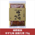 メーカー名:櫛野農園 (KUSJ0)<br>ブランド名:櫛野農園 (KUSHI)<br>原産国:日本<br>産地:九州<br>県名:大分県<br>原材料:ゆず皮、とうがらし、黒ごま、白ごま、山椒、麻の実、青さ<br>内容量:70g<br>ご注意:高温多湿・直射日光を避けて保存してください。 アレルギー物質の表示:ごま<br><br>商品紹介:自家農園の黄ゆずを新鮮なうちに加工して使用しています。 <br>乾燥ゆず皮と、6種の香辛料をブレンドしました。 <br>鍋物、汁物、焼き物等に、ひとふりしますと香辛料がピリッと香ばしく、ゆずのさわやかな香りが口いっぱいに広がります。 <br>ゆず七味のお得な詰替え用です。
