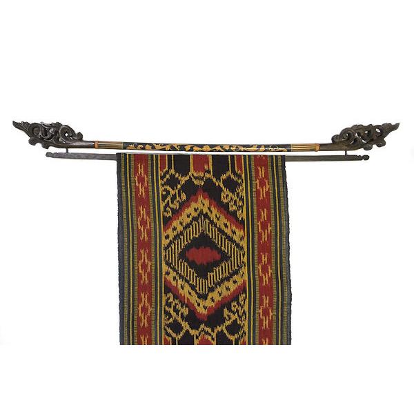 イカット タペストリー ハンガー ダブル 90cm 木彫り バンブー アジアン雑貨 バリ雑貨 タイ エスニック おしゃれな タペストリー