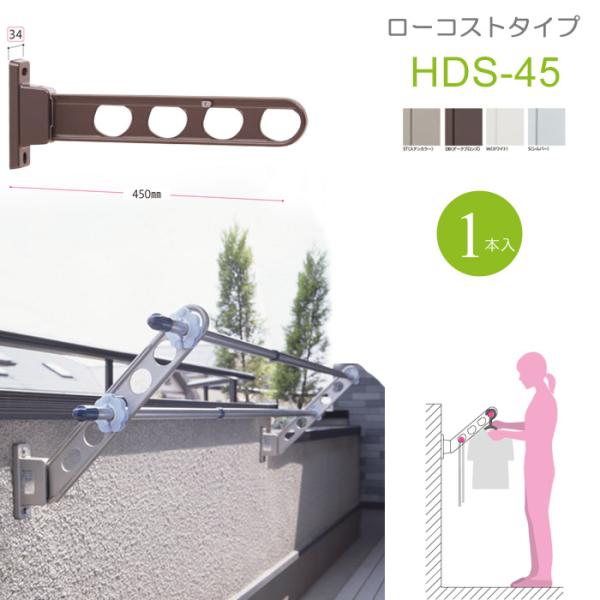 物干し竿受け 屋外 ベランダ 川口技研 ホスクリーン 腰壁用 HDS型45cm 収納型 スタンド1本 物干し 壁付け 物干し金物 物干金物 壁付 おしゃれ