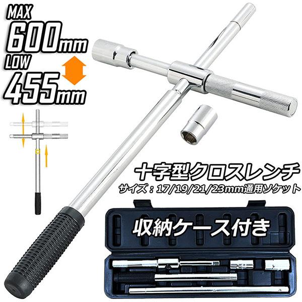 クロスレンチ 十字レンチ クロスレンチ 分解式 T字 十字 伸縮式 空転式 回転可能 フリーグリップ 早回し 17mm 19mm 21mm 23mm