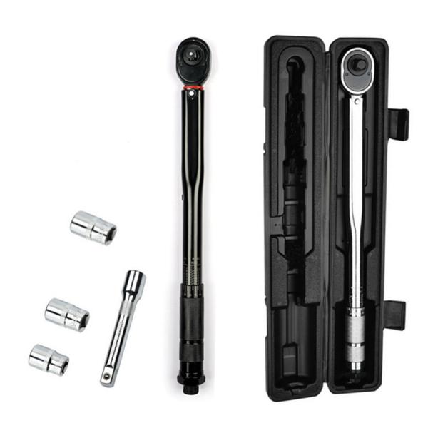 全黒 5-60 トルクレンチ バイク 3/8レンチ プリセット型 工具 整備 ケース付き ロードバイク 自動車 オイル交換 プラグ交換 マフラー交換 トルク 管理 調整 測定