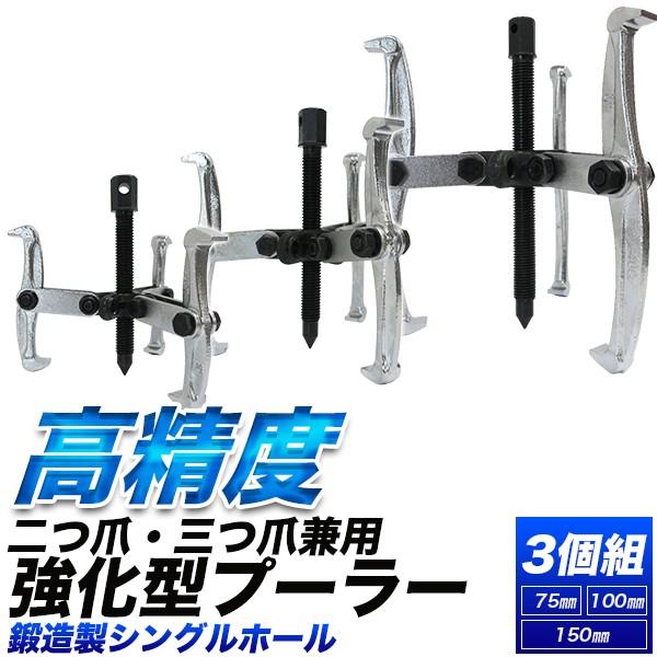 ギヤプーラー 強化型兼用 3個組 75mm 100mm 150mm 三本爪二本爪 ベアリングプーラー