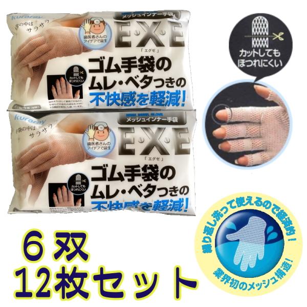 メッシュインナー手袋 E・X・E エグゼ メッシュ クラレ クラレトレーディング 切ってもほつれにくい インナー手袋 6双 12枚セット