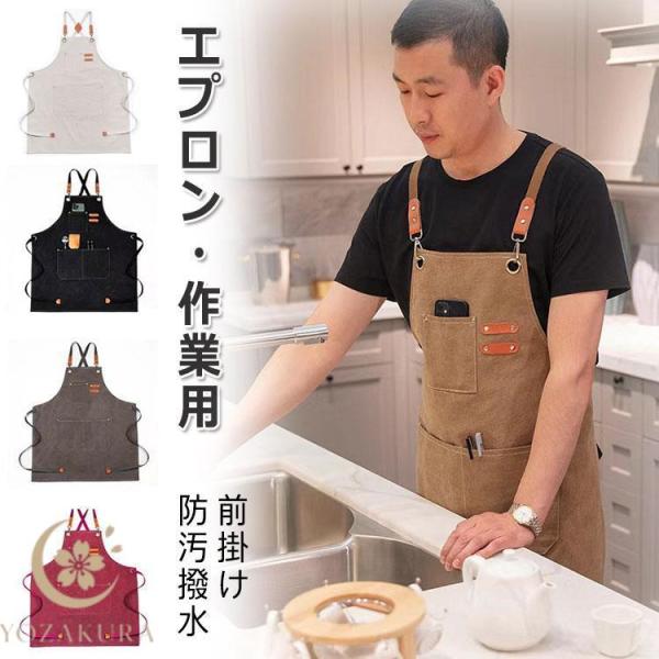 エプロン メンズ レディース エプロン 作業用 撥水加工 調整可能 男女兼用 キャンバス 前掛け ワークエプロン 作業 エプロン シンプル 女性用 男性用