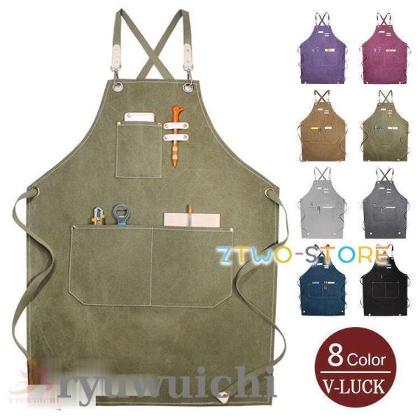 綿100% キャンバス エプロン 大人用 子供用 前掛け 多機能エプロン作業用 クロスタイプ 厚手 職人 フリーサイズ 男女可 7色 16オンス 美容